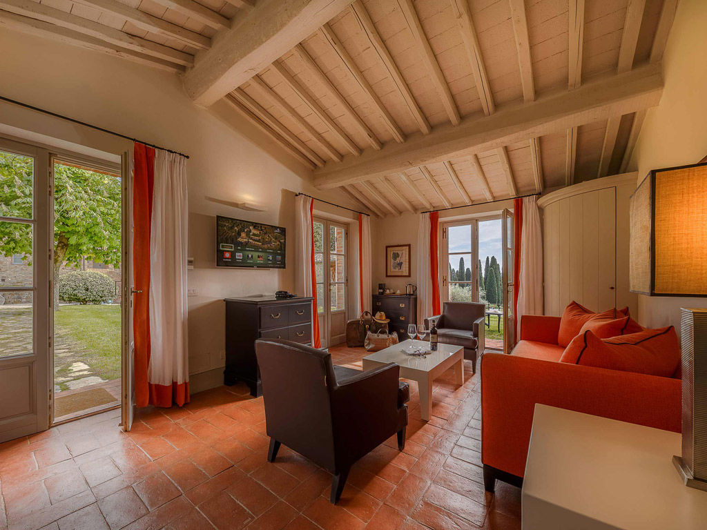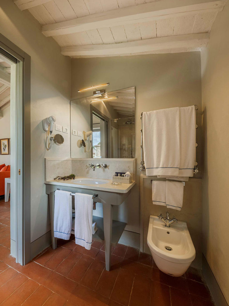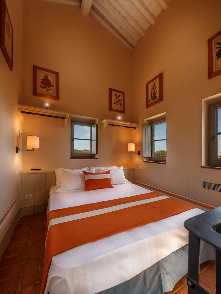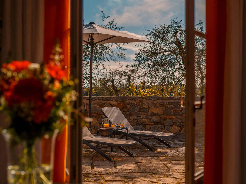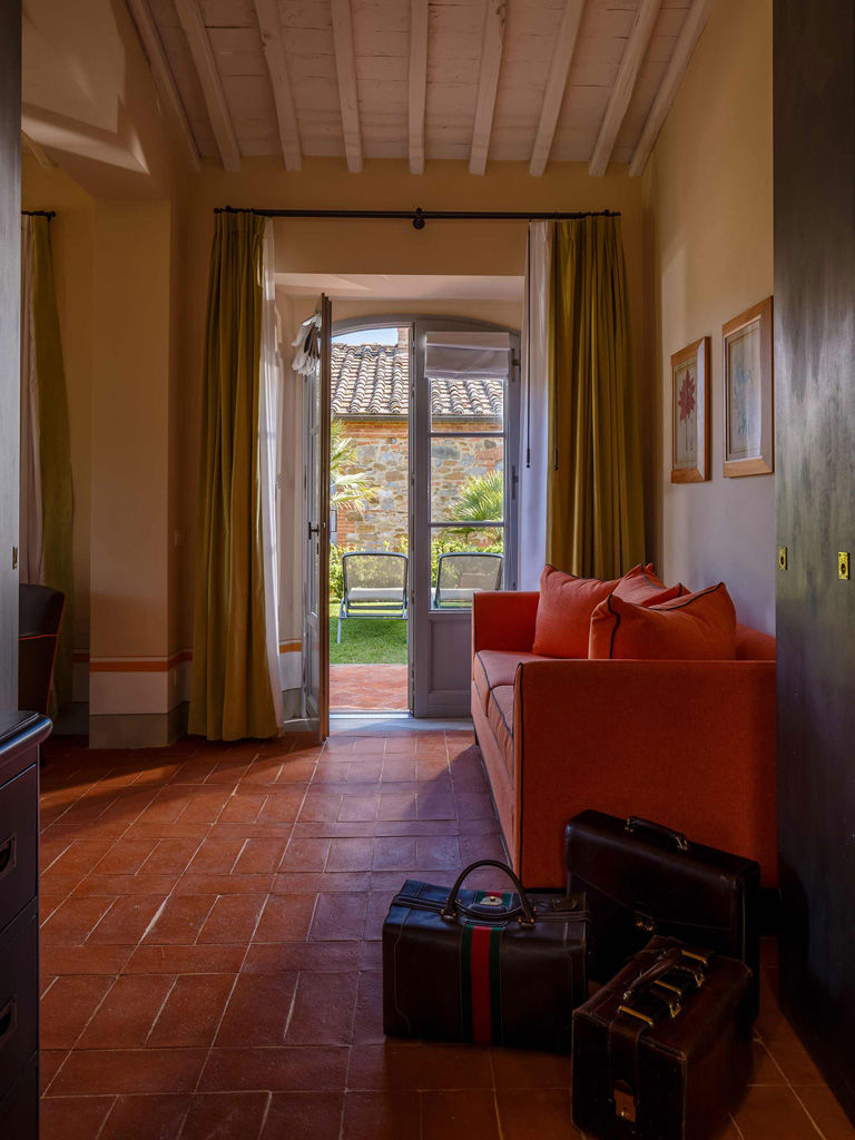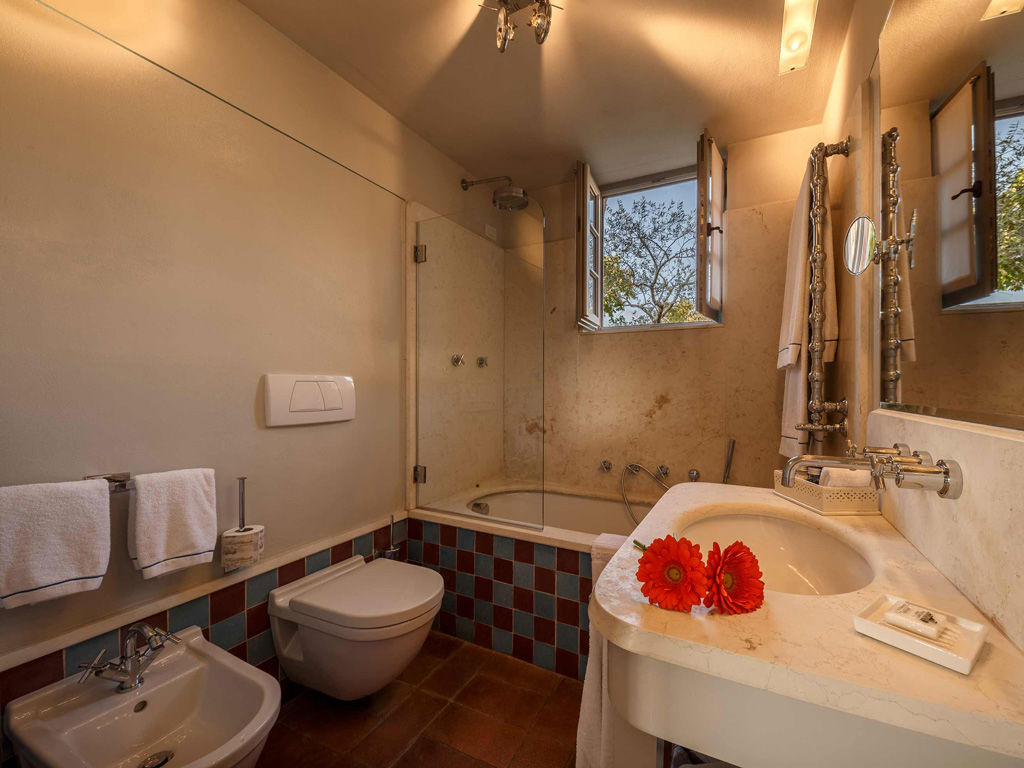The Garden is a small happy oasis, terraced, with olive trees and a large open garden where you can enjoy the sun's rays and relax. It has a view of the vegetable garden and cypresses. Inside, the rustic Tuscan style with exposed beams and terracotta floors characterizes both the comfortable living room with sofa bed and the charming bedroom with double bed. The two bathrooms with tub and shower are finished with the elegance of marble. Accommodates up to 4 people.
