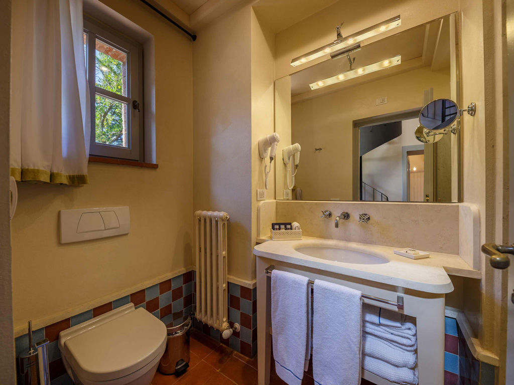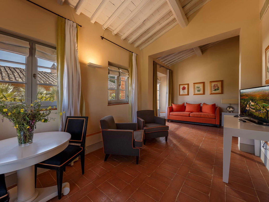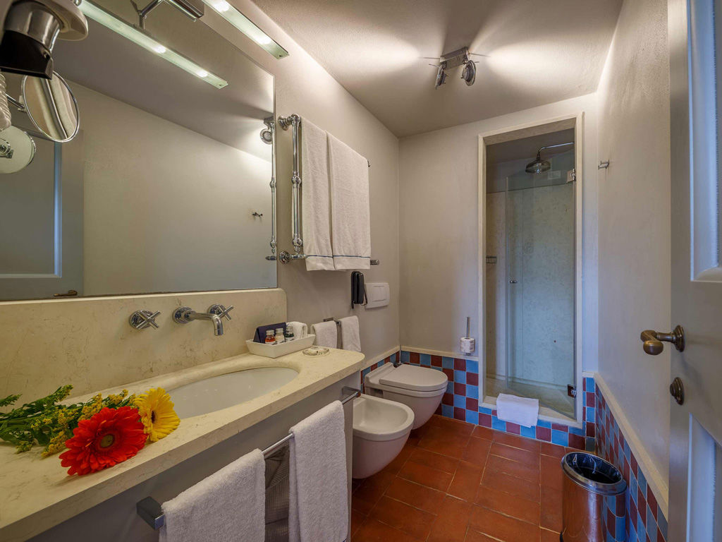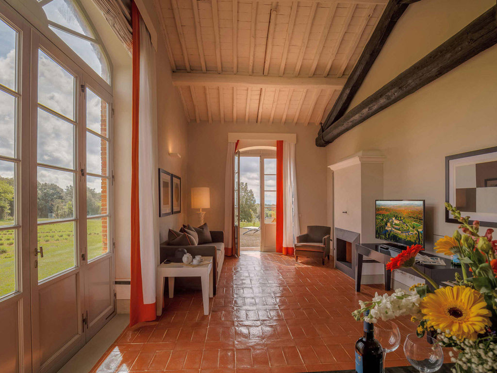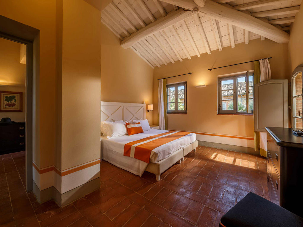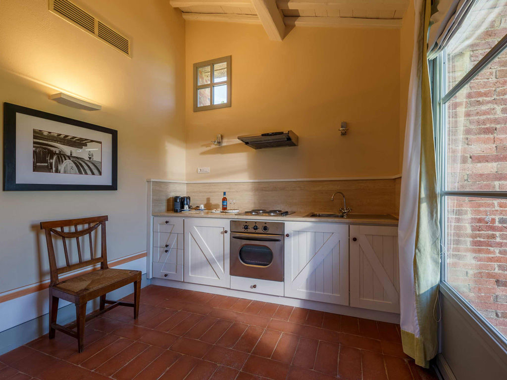 The Garden is a small happy oasis, terraced, with olive trees and a large open garden where you can enjoy the sun's rays and relax. It has a view of the vegetable garden and cypresses. Inside, the rustic Tuscan style with exposed beams and terracotta floors characterizes both the comfortable living room with sofa bed and the charming bedroom with double bed. The two bathrooms with tub and shower are finished with the elegance of marble. Accommodates up to 4 people.