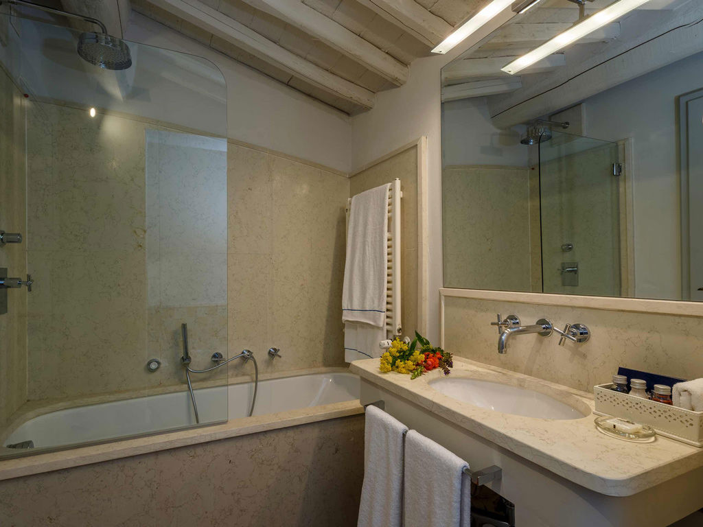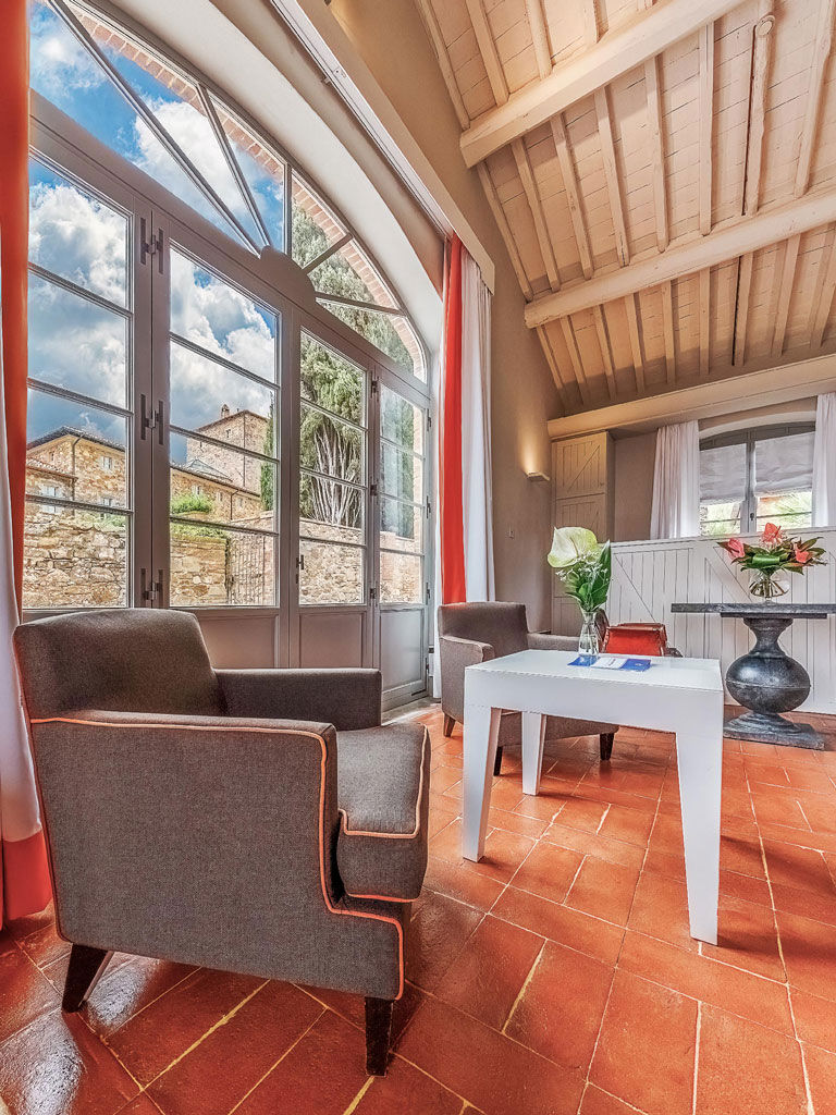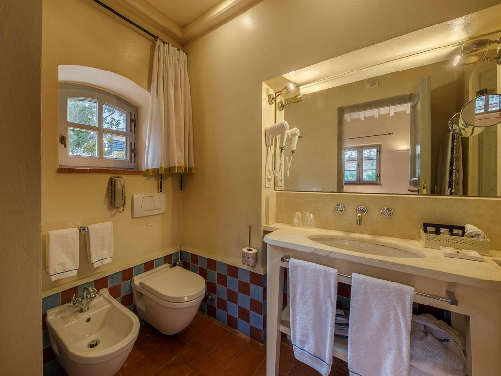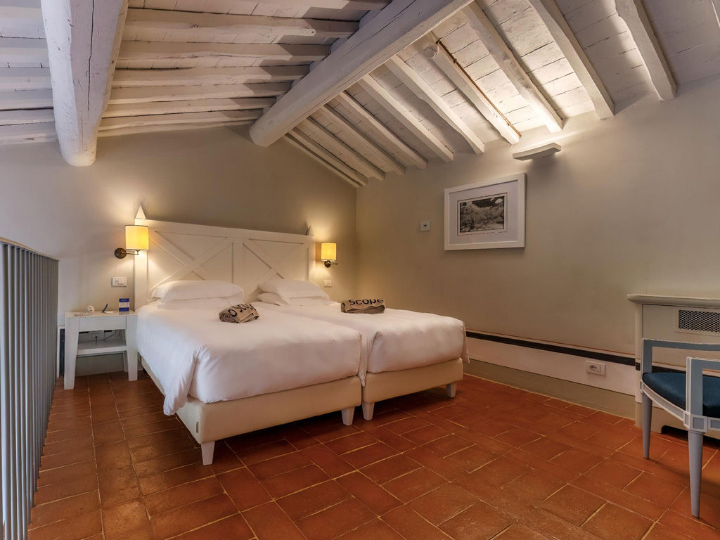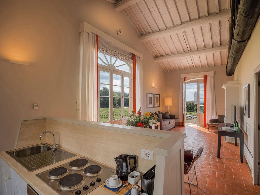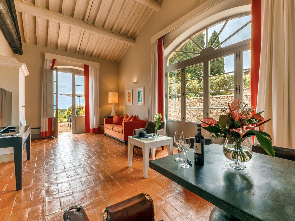 The Garden is a small happy oasis, terraced, with olive trees and a large open garden where you can enjoy the sun's rays and relax. It has a view of the vegetable garden and cypresses. Inside, the rustic Tuscan style with exposed beams and terracotta floors characterizes both the comfortable living room with sofa bed and the charming bedroom with double bed. The two bathrooms with tub and shower are finished with the elegance of marble. Accommodates up to 4 people.
